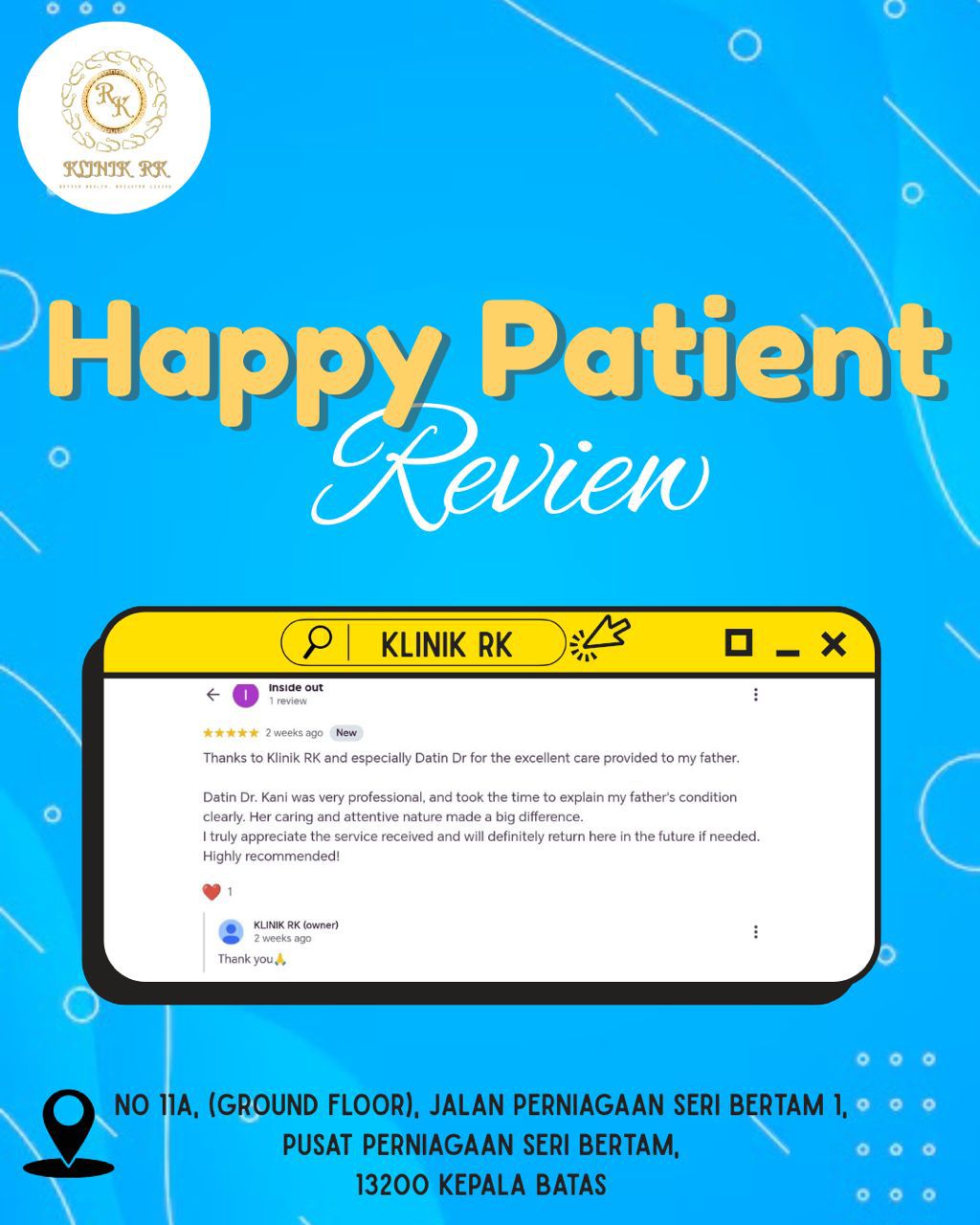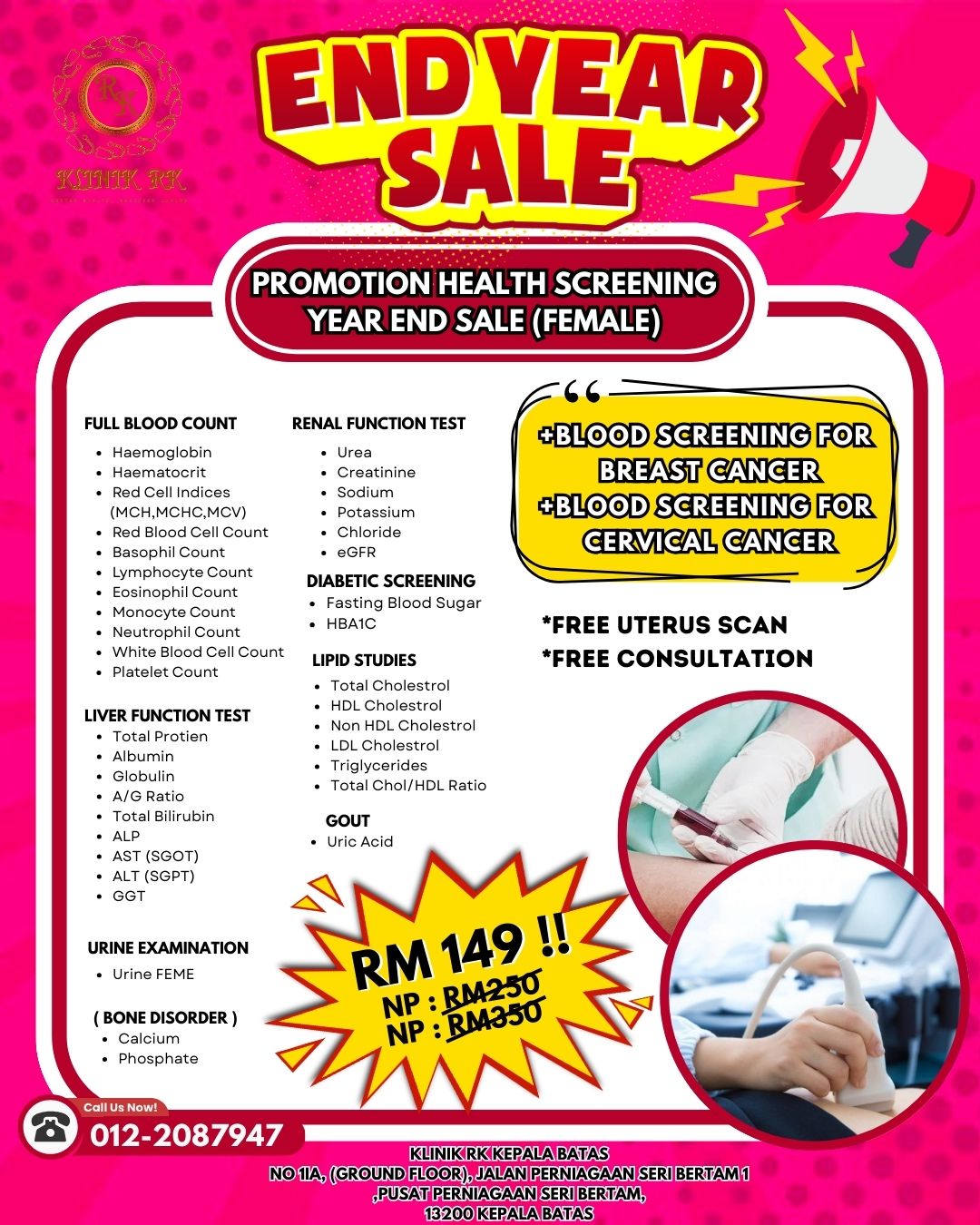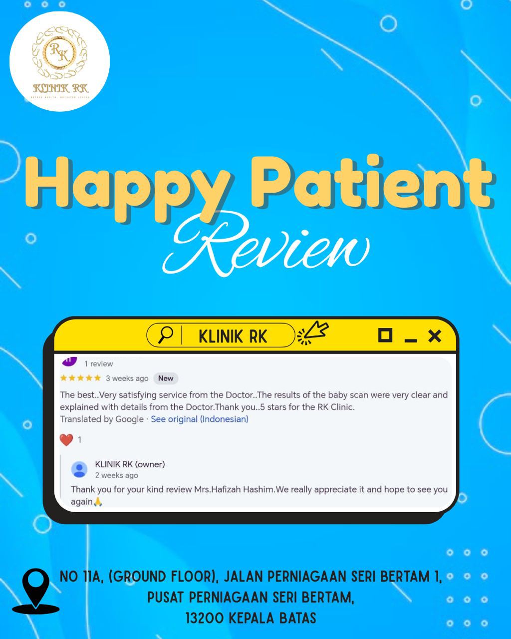 PERKHIDMATAN YANG DISEDIAKAN • Perubatan Am Dan Medical Check-Up • Rawatan Penyakit Ringan (Demam, Batuk, Selesema, Dll) • Rawatan Penyakit Kronik (Kencing Manis, Darah Tinggi, Dll) • Kesihatan Wanita (Rawatan Ibu Mengandung, Ujian Pap Smear, Perancang Keluarga, Pemeriksaan Kehamilan, Dll) • Antenatal Ultrasound Scan • ECG • Nebulizer • Suntikan Dan Vaksin • Rawatan Luka Asas/ Basic Wound, Dressing • Ujian Darah, Air Kencing, Dll
