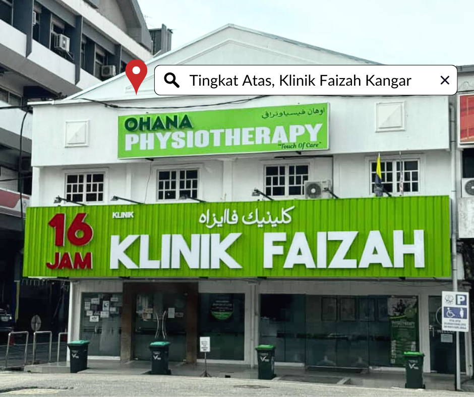 Selamat datang ke Ohana Physiotherapy- Pusat fisioterapi pilihan anda di Perlis. Ohana Physiotherapy ialah inisiatif dibawah Klinik Faizah Kangar dalam menyediakan perkhidmatan fisioterapi sebagai rawatan alternatif kepada pesakit. Lokasi: Tingkat atas, Klinik Faizah Kangar.
