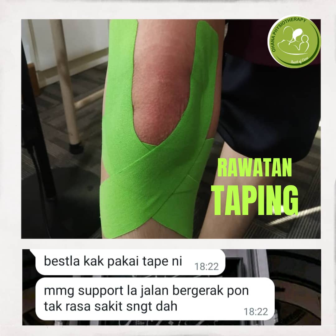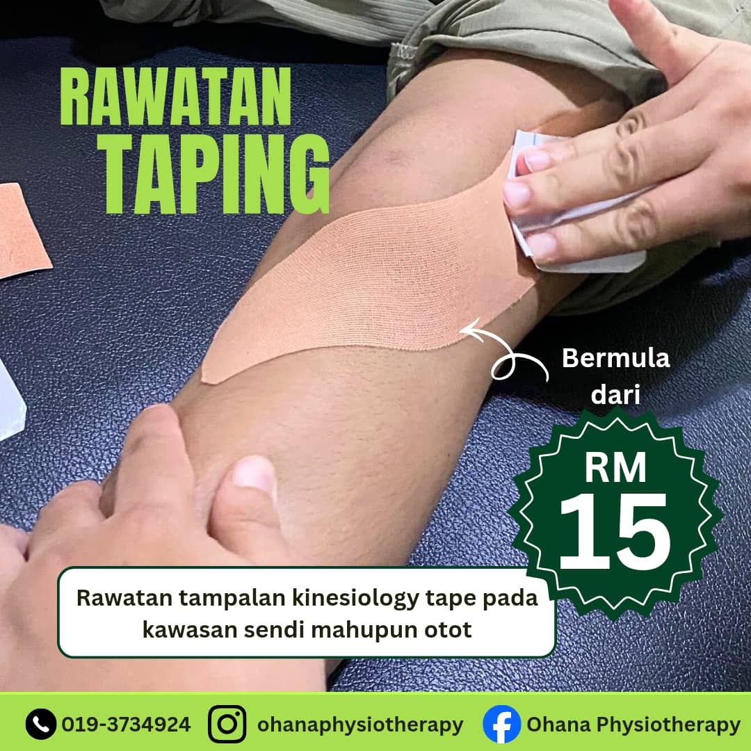 Rawatan taping ialah rawatan yang menggunakan 𝘒𝘪𝘯𝘦𝘴𝘪𝘰𝘭𝘰𝘨𝘺 𝘵𝘢𝘱𝘦 yang ditampalkan pada kawasan sendi mahupun otot untuk merawat masalah sakit keradangan sendi, pergerakan sendi terbatas, bengkak, lebam, menghadkan sendi dan lain-lain. Kebanyakan digunakan oleh pesakit atlet sukan mahupun mereka yang aktif bergerak.