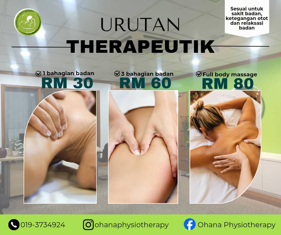 Urutan terapeutik ini mengunakan tekanan manual yang lembut dan dalam pada kawasan otot. Urutan yang dilakukan dengan tujuan untuk melegakan kesakitan, meningkatkan pergerakan dan melancarkan aliran darah. Ia sesuai untuk pesakit yang ada masalah ketegangan otot, sakit urat simpul (𝘮𝘶𝘴𝘤𝘭𝘦 𝘬𝘯𝘰𝘵), migrain, 𝘵𝘦𝘯𝘴𝘪𝘰𝘯 𝘥𝘢𝘯 𝘴𝘵𝘳𝘦𝘴𝘴 𝘩𝘦𝘢𝘥𝘢𝘤𝘩𝘦, 𝘶𝘱𝘱𝘦𝘳 𝘵𝘳𝘢𝘱 𝘮𝘶𝘴𝘤𝘭𝘦 𝘴𝘱𝘢𝘴𝘮 dan lain-lain.