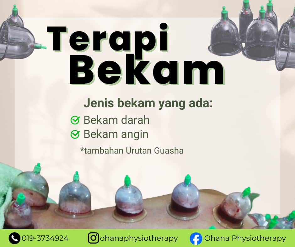 Ohana Physiotherapy juga menyediakan rawatan tambahan iaitu bekam darah dan bekam angin. Bekam darah membantu membaiki pengaliran darah dalam darah disamping mengurangkan ketegangan otot. Bekam angin pula membantu meringankan badan dan mengurangkan ketegangan otot tanpa perlu dicucuk dan dikeluarkan darah seperti bekam darah. Bekam sesuai untuk mereka yang ada masalah sakit otot, sakit kepala, Migrain, resdung dan lain-lain lagi.