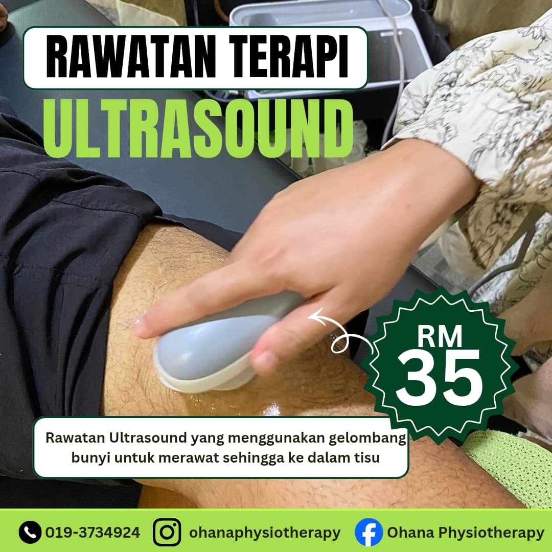 Rawatan ini menggunakan mesin ultrasound yang membantu merawat kawasan sakit. Ia yang menggunakan frekuensi gelombang bunyi merawat sampai ke tisu dalam kawasan sendi, otot, ligament, meniskus mahupun tulang. Rawatan ini membantu untuk meningkatkan kesembuhan , mengurangkan keradangan, meningkatkan pengaliran darah dan mengurangkan kesakitan. Rawatan ini sangat sesuai untuk pesakit yang ada masalah koyakan tisu, keradangan sendi mahupun ketegangan otot.