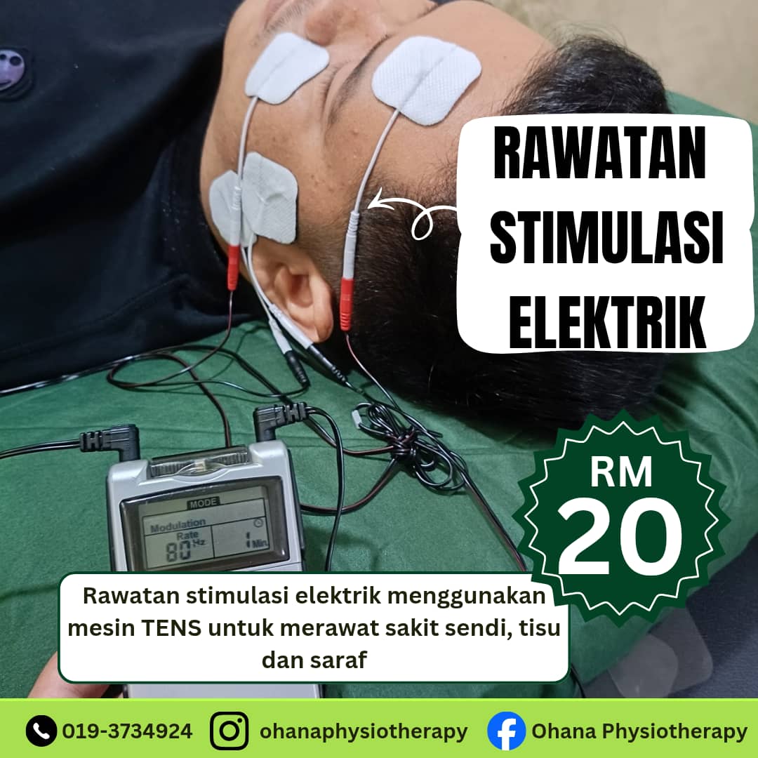 Rawatan ini ialah rawatan mesin yang menggunakan arus elektrik rendah untuk merawat sakit otot, sendi dan saraf. Mesin 𝘛𝘳𝘢𝘯𝘤𝘶𝘵𝘢𝘯𝘦𝘰𝘶𝘴 𝘌𝘭𝘦𝘤𝘵𝘳𝘪𝘤𝘢𝘭 𝘕𝘦𝘳𝘷𝘦 𝘚𝘵𝘪𝘮𝘶𝘭𝘢𝘵𝘪𝘰𝘯 akan dilekatkan pada kawasan sakit bagi menghantar impuls untuk menghalang signal pada saraf sakit atau meningkatkan penghasilan 𝘌𝘯𝘥𝘰𝘳𝘱𝘩𝘪𝘯. Rawatan ini sesuai untuk masalah sakit keradangan sendi, masalah saraf, pesakit strok dan lain-lain.