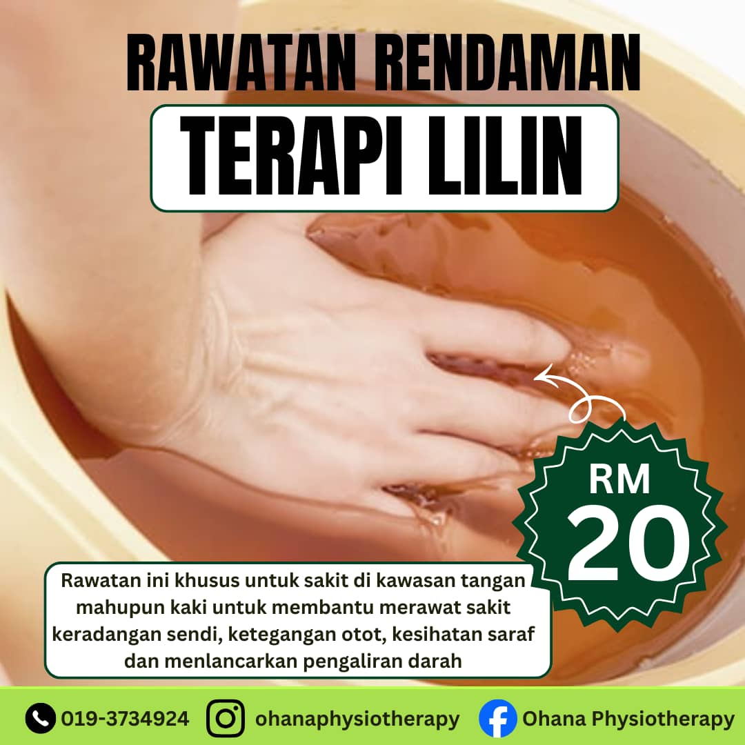 Rawatan rendaman terapi lilin ialah salah satu jenis terapi haba yang menggunakan cecair lilin yang bersesuaian dengan kulit untuk memberikan rasa haba pendam ke kawasan sakit. Ia sesuai untuk pesakit yang ada masalah sakit di kawasan tangan dan kaki. Rawatan ini membantu untuk mengurangkan sakit saraf , kekakuan sendi, ketegangan otot dan meningkatkan pengaliran darah.